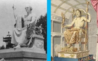 Washington is also depicted as a god (Zeus, specifically) within Horatio Greenough’s 1840 sculpture—called “Enthroned Washington”—that once sat within the rotunda of the United States Capitol and is now housed within the Smithsonian Museum.[4] It was a recreation of the great statue of Zeus at Olympia. With Zeus being considered as the chief of the gods in Greek mythology, we see precisely what the aim was with Greenhough’s sculpture.