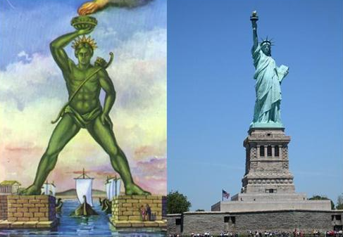The sun god tradition is thoroughly pagan in nature and, in truth, is often connected to none other than Satan himself. When Lazarus’ poem refers to the statue as the “New Colossus,” this refers specifically to the Colossus of Rhodes. This statue was erected on the Greek Island (and city) of Rhodes to commemorate the defense of Rhodes from Macedonian forces, and it stood roughly 108 feet tall. Not surprisingly, it was one of the Seven Wonders of the Ancient world. It depicted the Greek sun god, Helios, and it possessed radiant sun rays that protruded from its head.