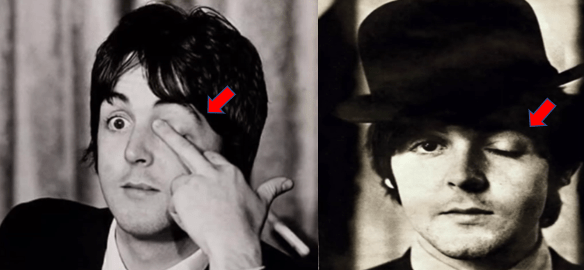 (In both pictures, McCartney emphasizes one eye: a favorite of Satanic followers of all stripes.)