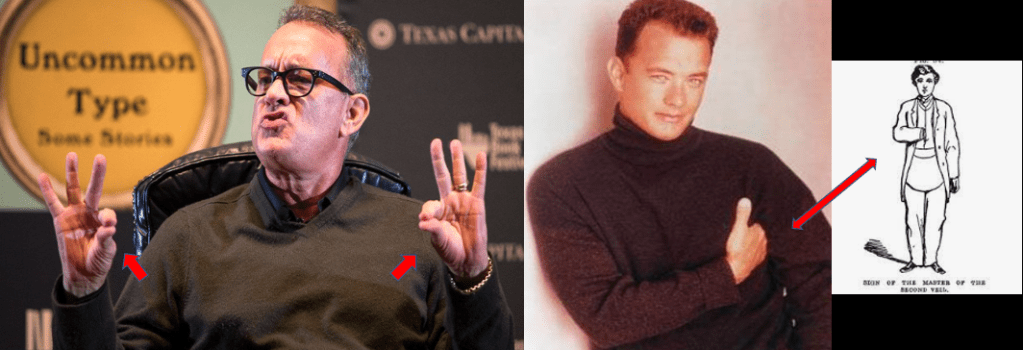Tom Hanks, who is often believed to be one of the “good guys” in Hollywood (hah!), displays his allegiance to Satan in these images.