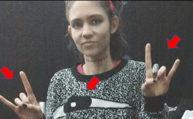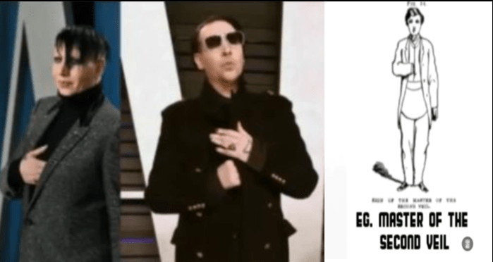 This is specifically a Masonic symbol but, given the overlap between Freemasonry and Satanism, those who display it are typically also satanists. This is also called the “Sign of the Master of the Second Veil” in Freemasonry. Rest assured that this is done with specific intent and is not random.